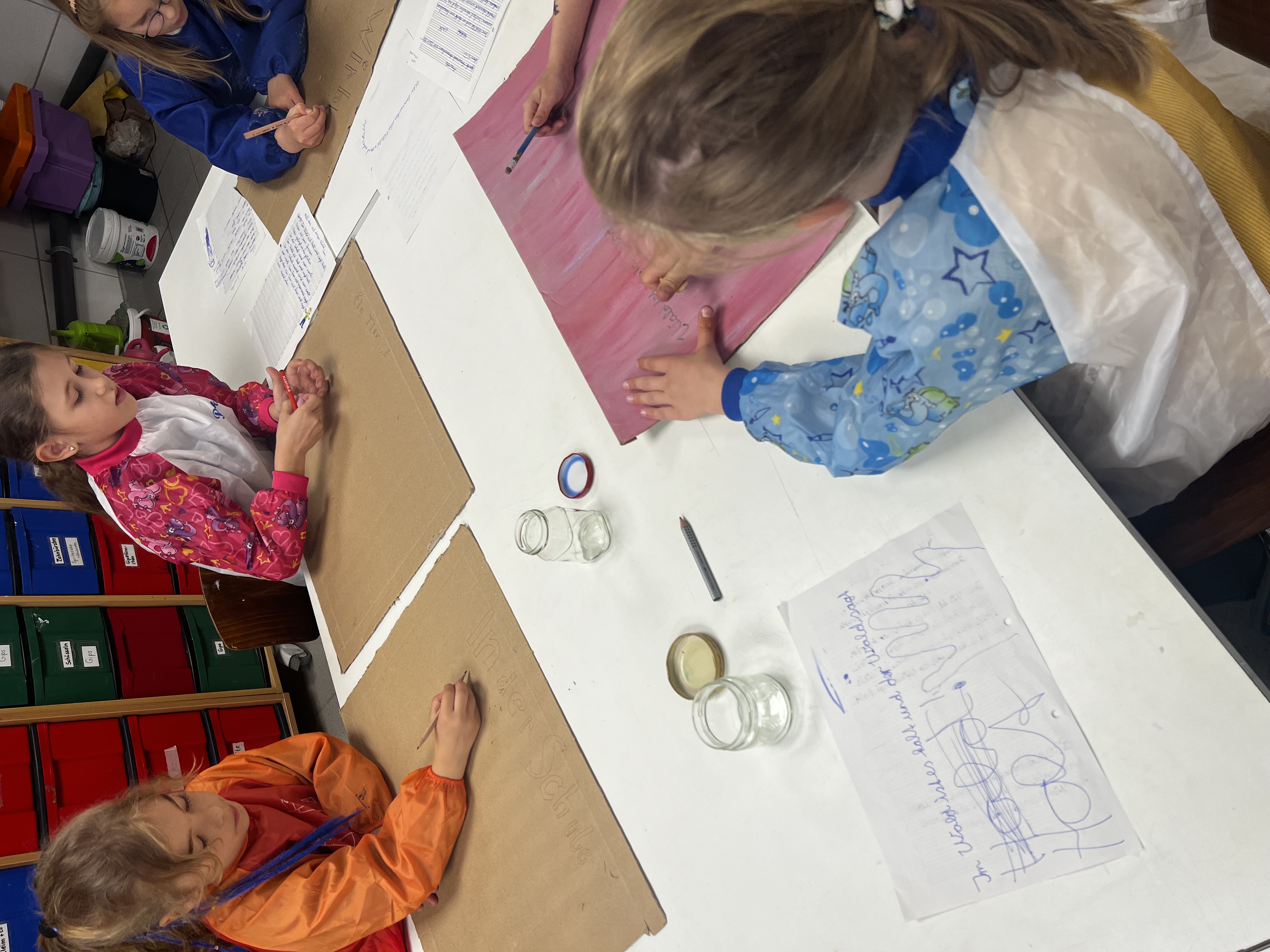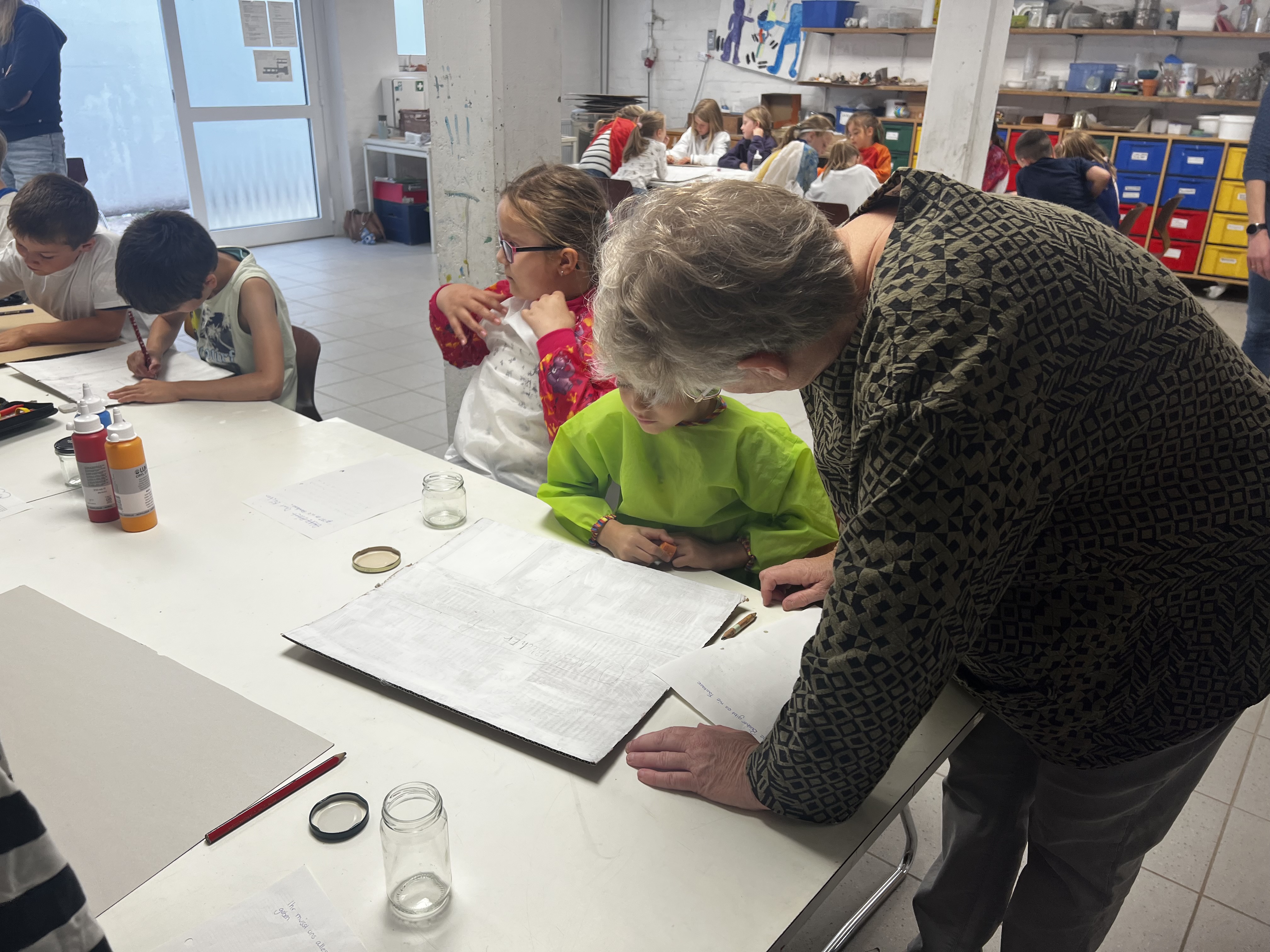 Nach der Lesung aus dem Buch "Was ist denn hier passiert?" tauchen die Kinder direkt in die Welt der Comics ein und erproben selbst erste einfache Zeichnungen und Bilderzählungen.