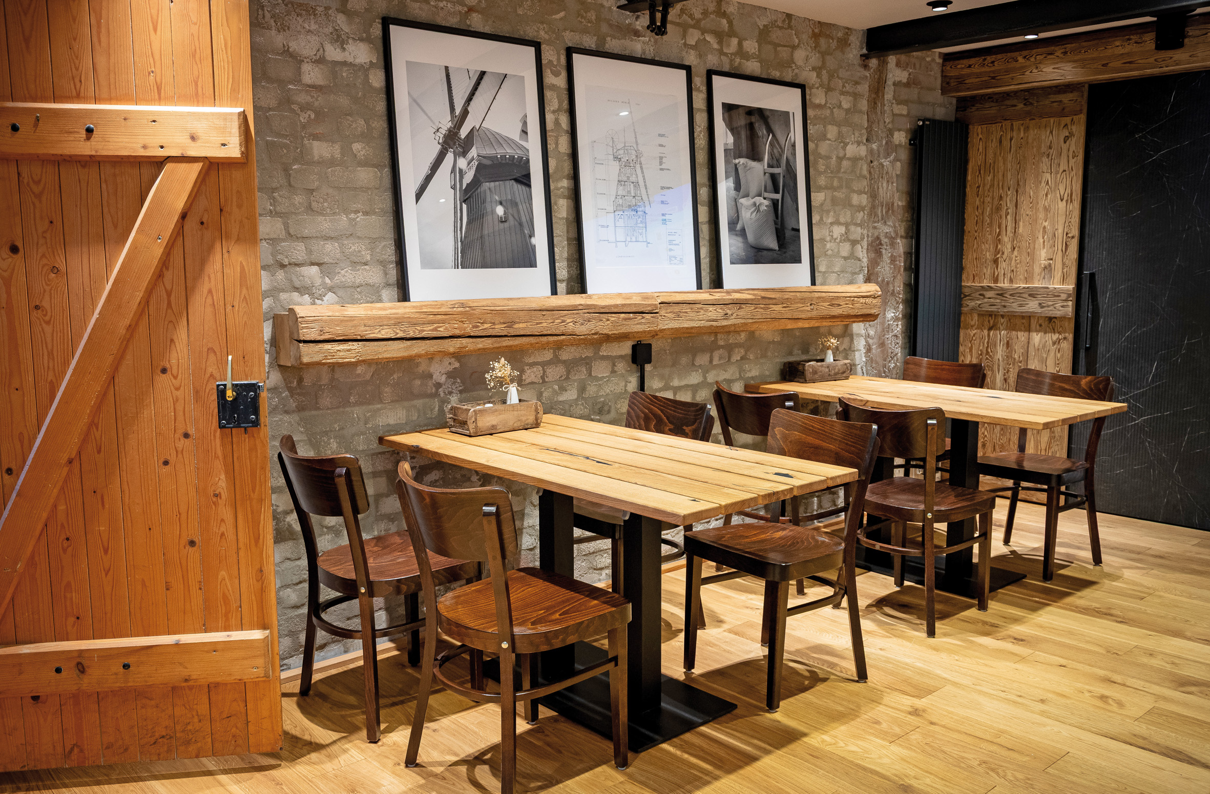 Probieren kann man alles im Mühlencafé, das sich von dem einstigen kleinen Anbau zu einem Café im Erdgeschoss der historischen Mühle wandelte. 40 Plätze gibt es dort, weitere 20 Plätze ein Stockwerk höher, wo auch geheiratet werden kann. Nach neun Monaten Umbauzeit konnte die neue alte Mühle zu Pfingsten 2025 wieder eröffnet werden.